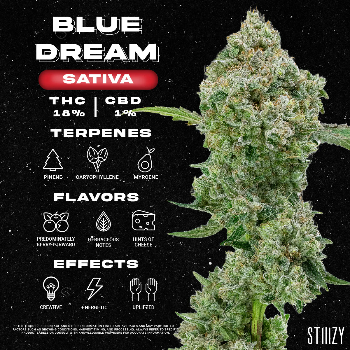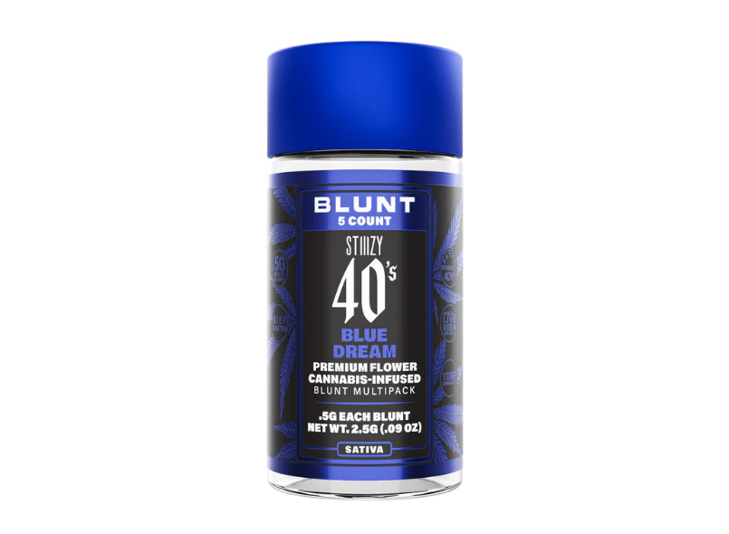 Elevate your experience with our STIIIZY 40’s Infused Blunts, featuring a live resin infusion that brings out the best of Blue Dream’s flavor and effects. Each blunt is rolled with care in tobacco-free, kief-dusted hemp wraps, ensuring a smooth, even draw that lets the blue dream strain lineage shine.”